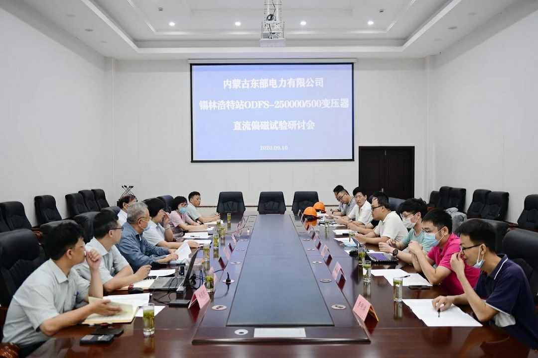 研讨会上,我公司介绍了国网蒙东锡林浩特ODFSZ-250000/500变压器在设计方面对直流偏磁采取的抑制措施的情况,提出了初步的试验方案。与会专家们对变压器的试验条件和国内开展直流偏磁试验的现状进行了分析,对一些后续事宜进行了讨论和研究,形成最终的试验方案。